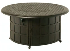 Aluminum gas burning firepit with tile top. A perfect size for family and friends to gather.