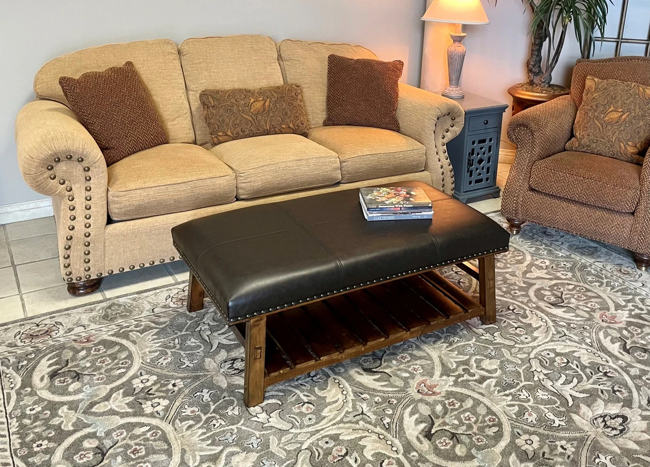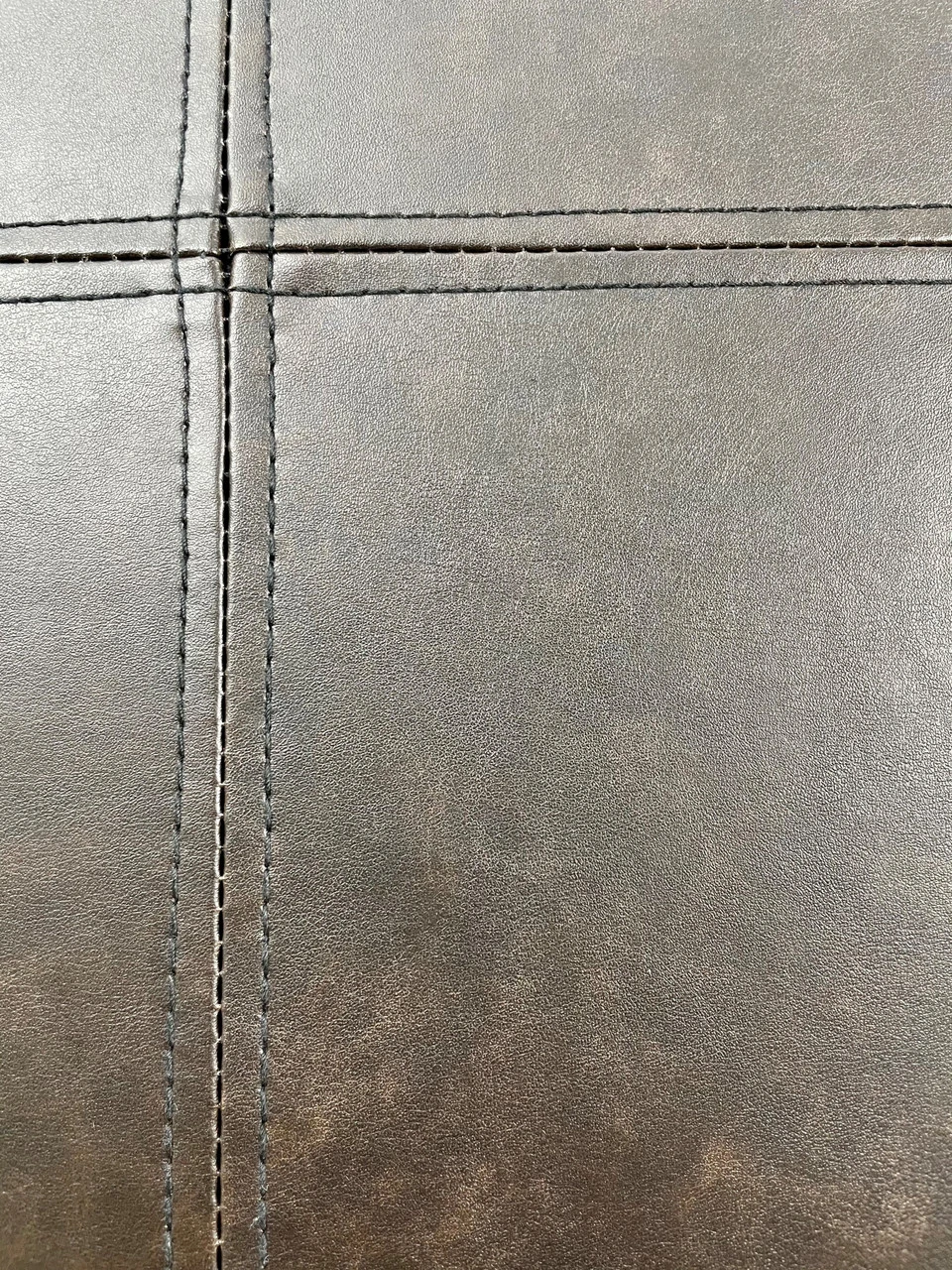- Top Cushion Material: Faux Leather over Foam. Saddle Stitch detailing