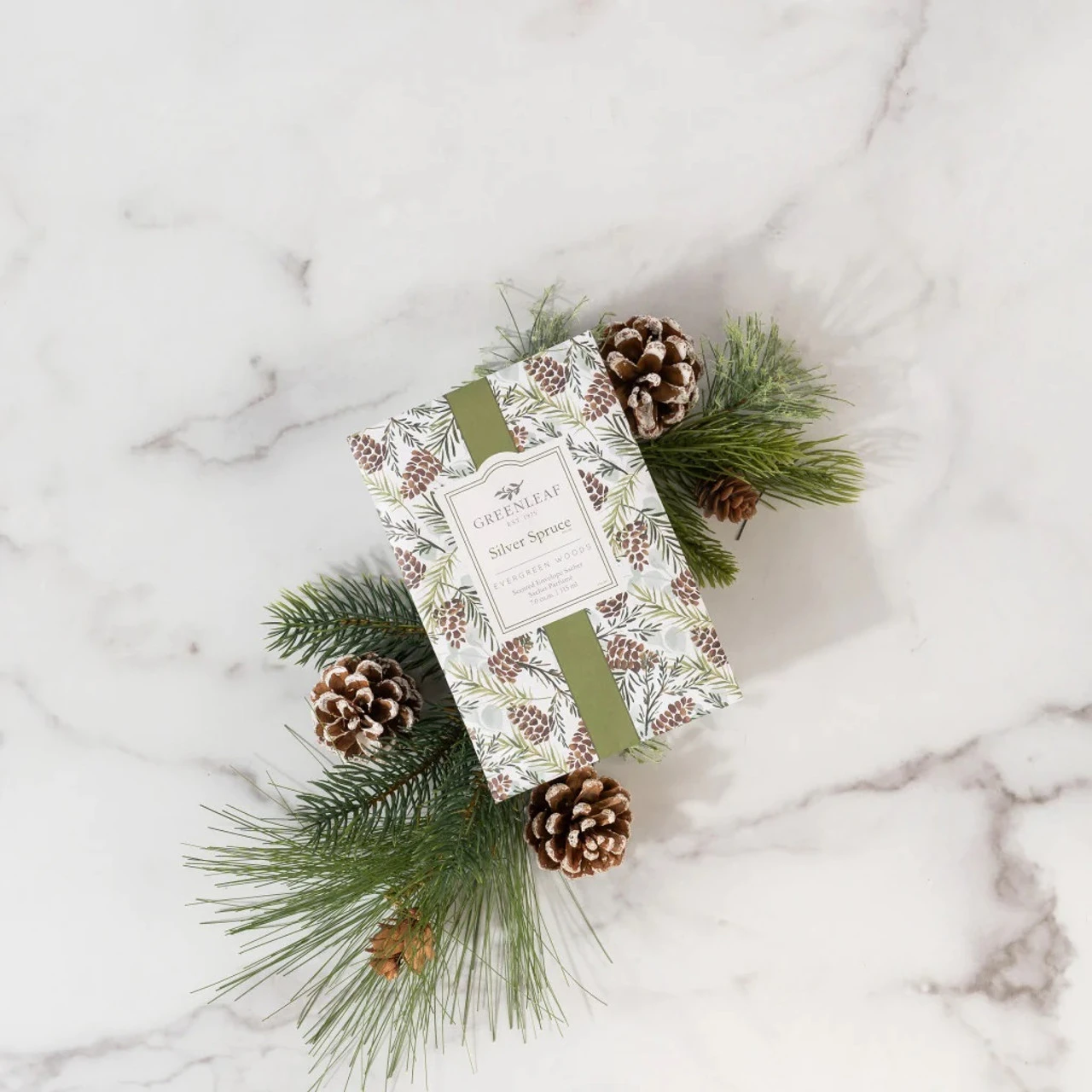 - Fragrance Description: A wintry wonderland mainstay, Silver Spruce encapsulates the magic of a snow-covered forest sparkling with the aroma of fir needles