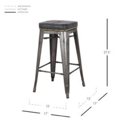 Metropolis KD PU Metal Backless Counter Stool, Vintage Black