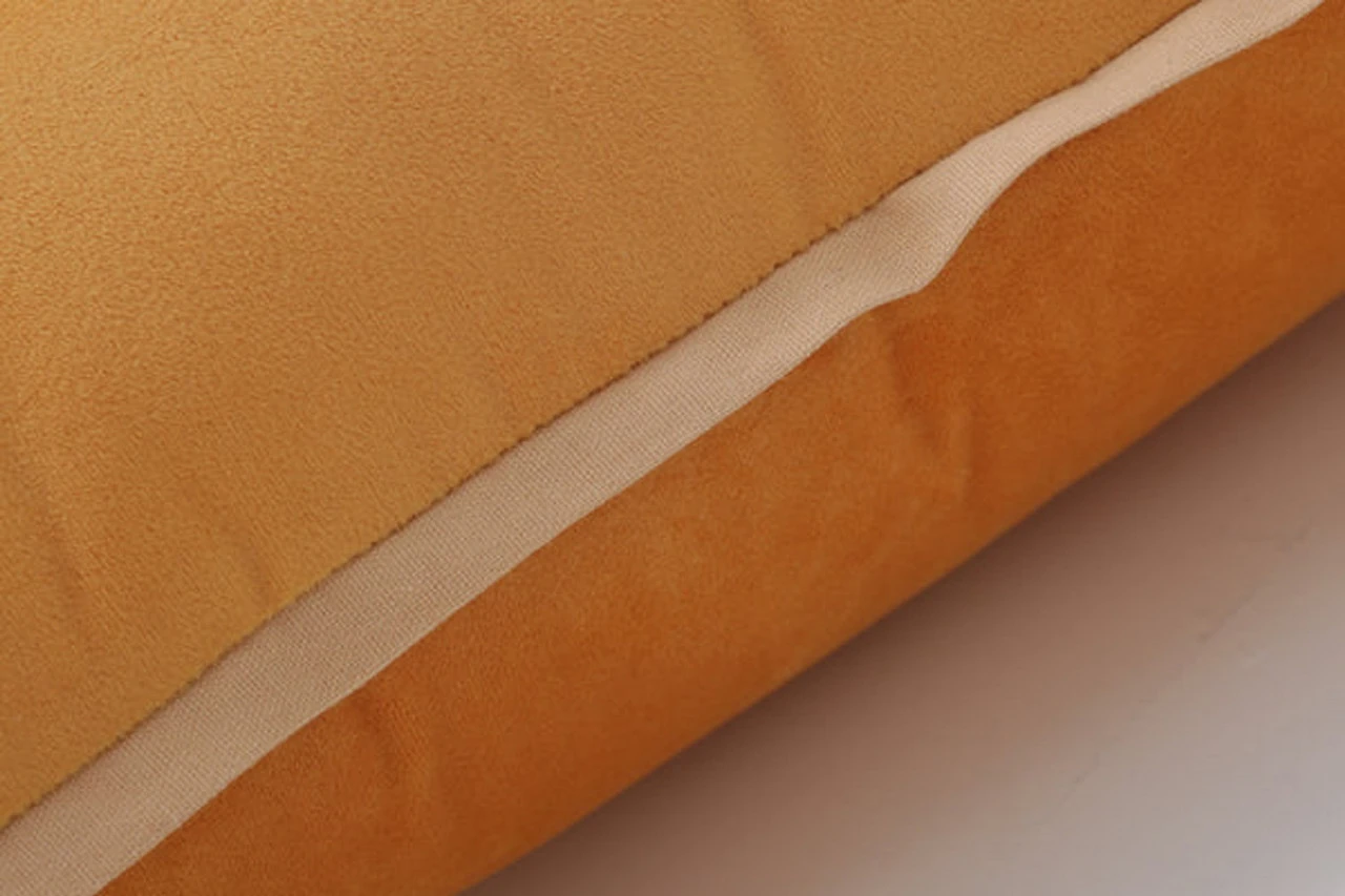 - In solid yellow-gold velvet with a coordinating cotton flange in a shade of light tan