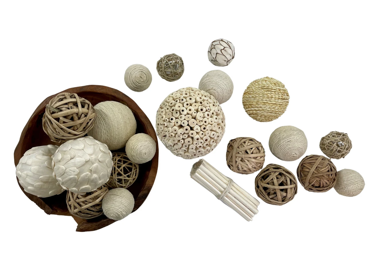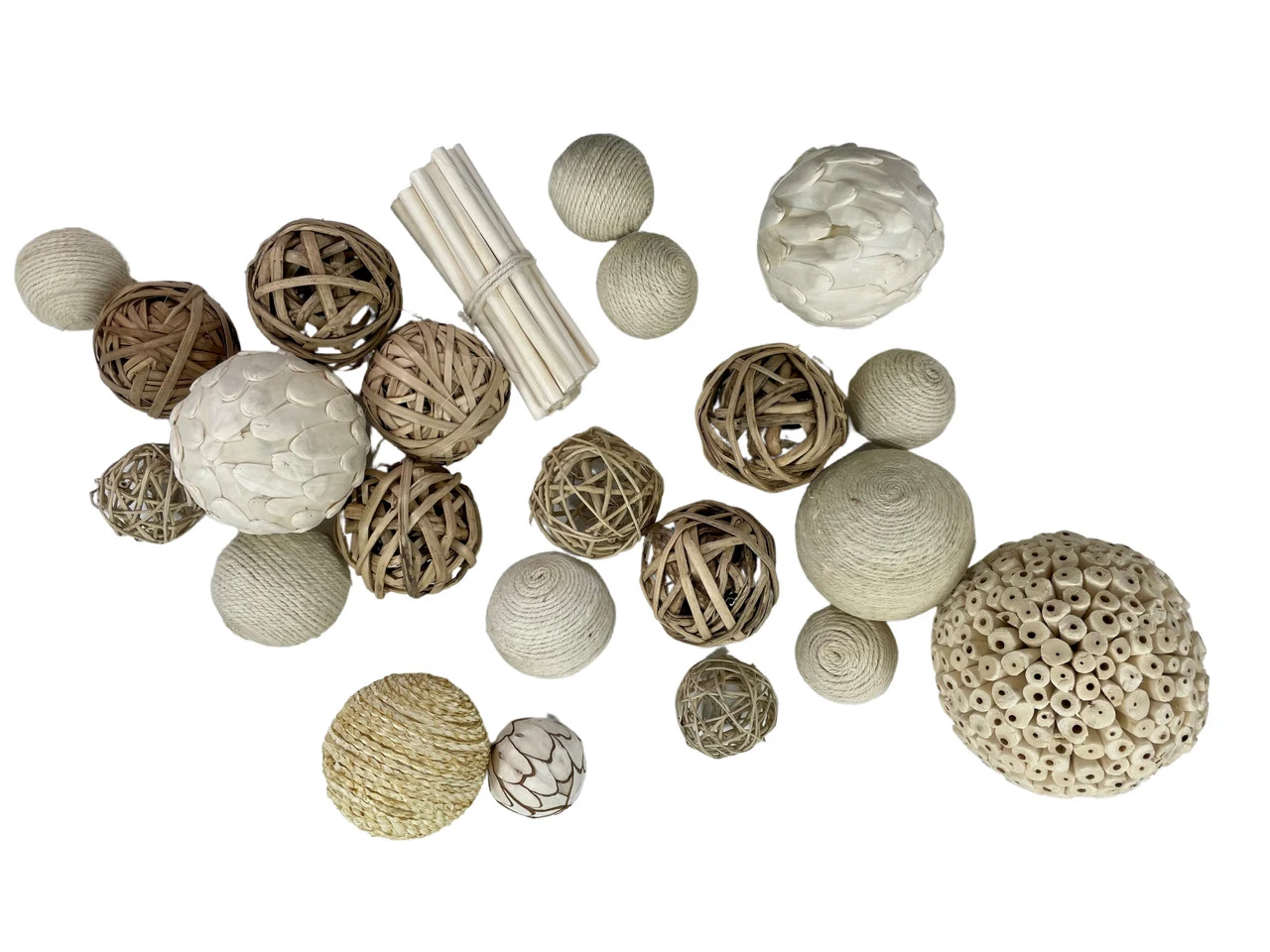 Add texture, color, and shape to your indoor designs with this jumbo carton of mixed orbs. Ranging in size from two to four inches these orbs in a mix of natural tones will look great in a bowl, large clear container, or to create interest in an arrangement.