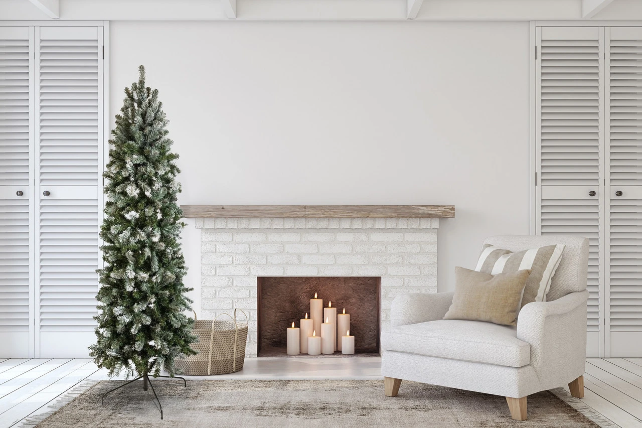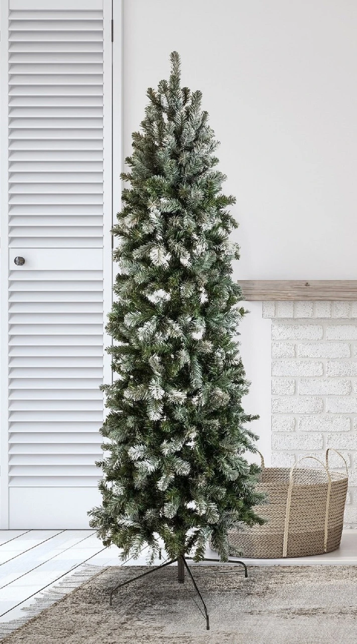 Allegheny Slim Hinged 7′ Christmas Tree x 28″ diameter with White Tipped Branches