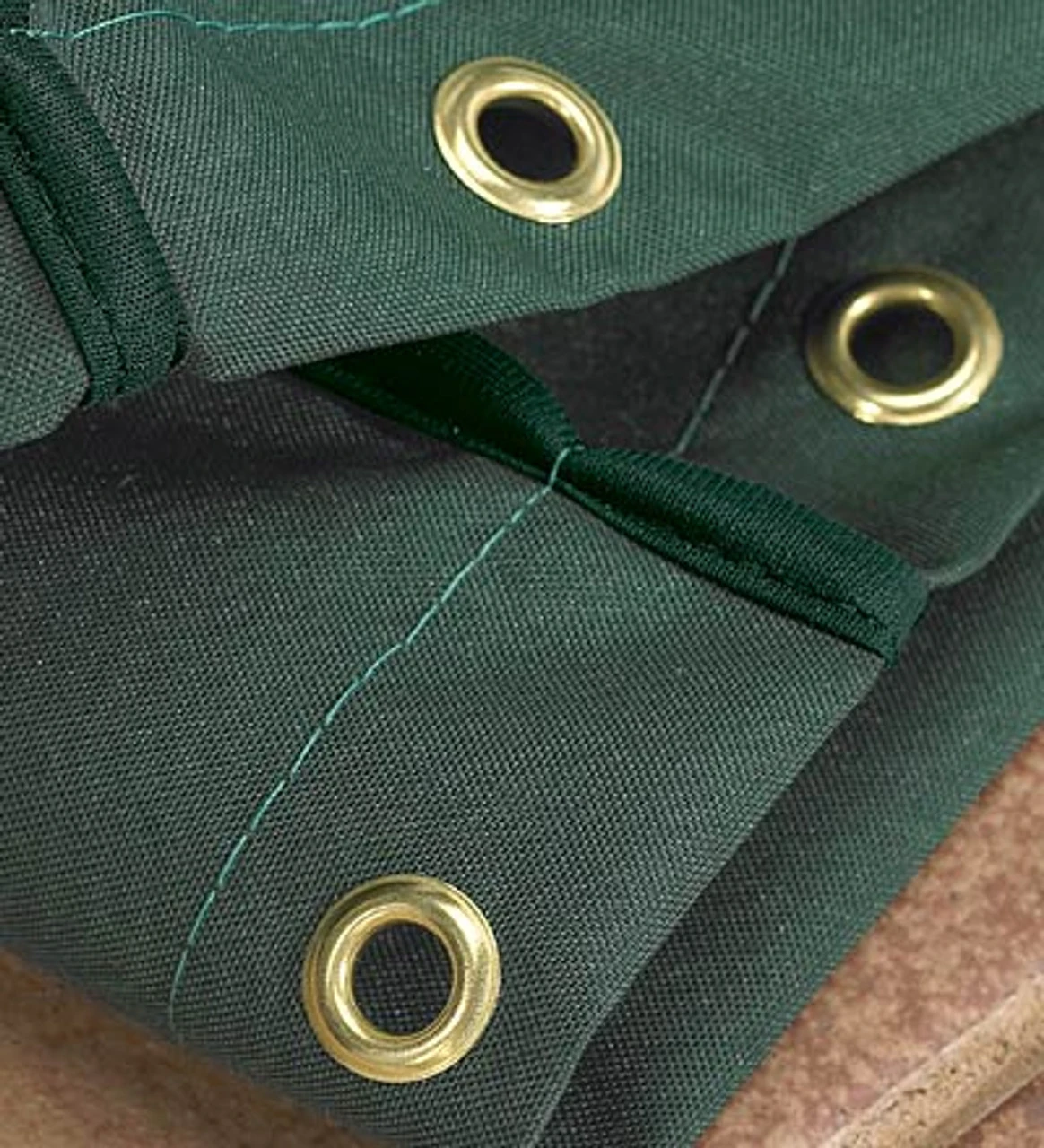 - Brass-coated grommets and heavy-duty ties with cord locks