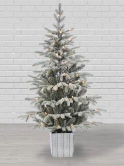 12′ Flocked Pine Long Needle Prelit Artificial Christmas Tree