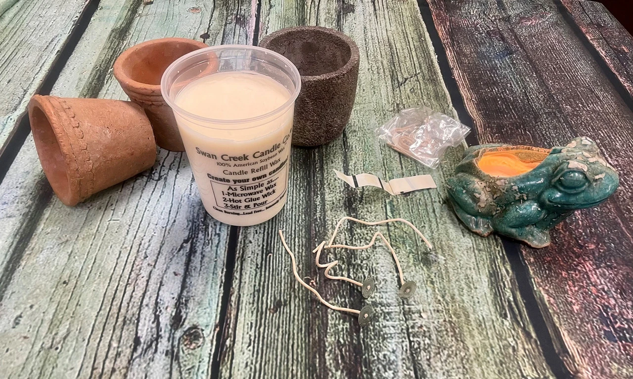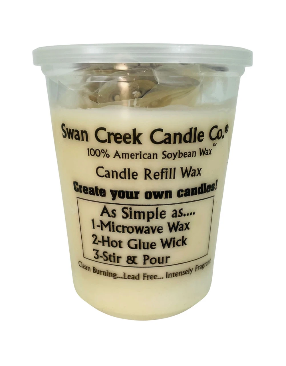 Kit includes: wicks, glue tabs, instruction sheet, 24oz. microwaveable American Soybean Wax