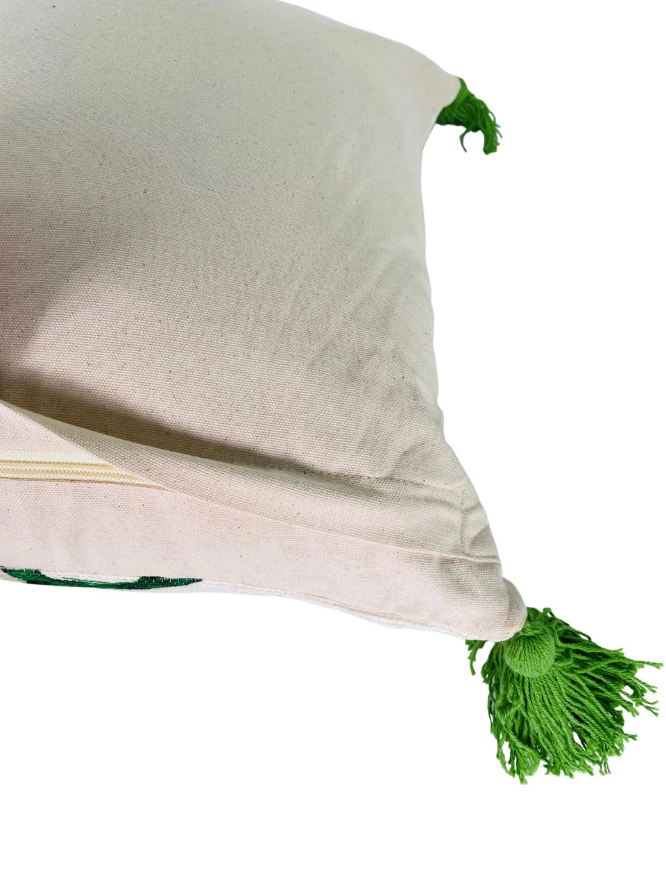 Give a new life to your room with this gorgeous pillow cover with insert. A generous 20″ x 20″ in printed fine cut woven polyester chenille and hand made green color tassels create a unique look. This pillow has a zippered cover for easy care.