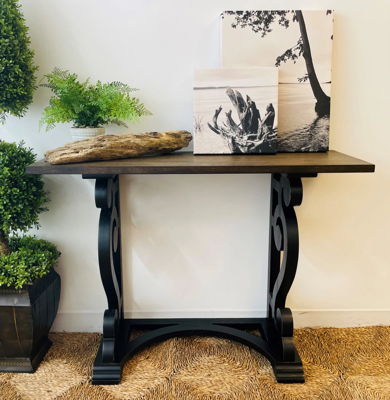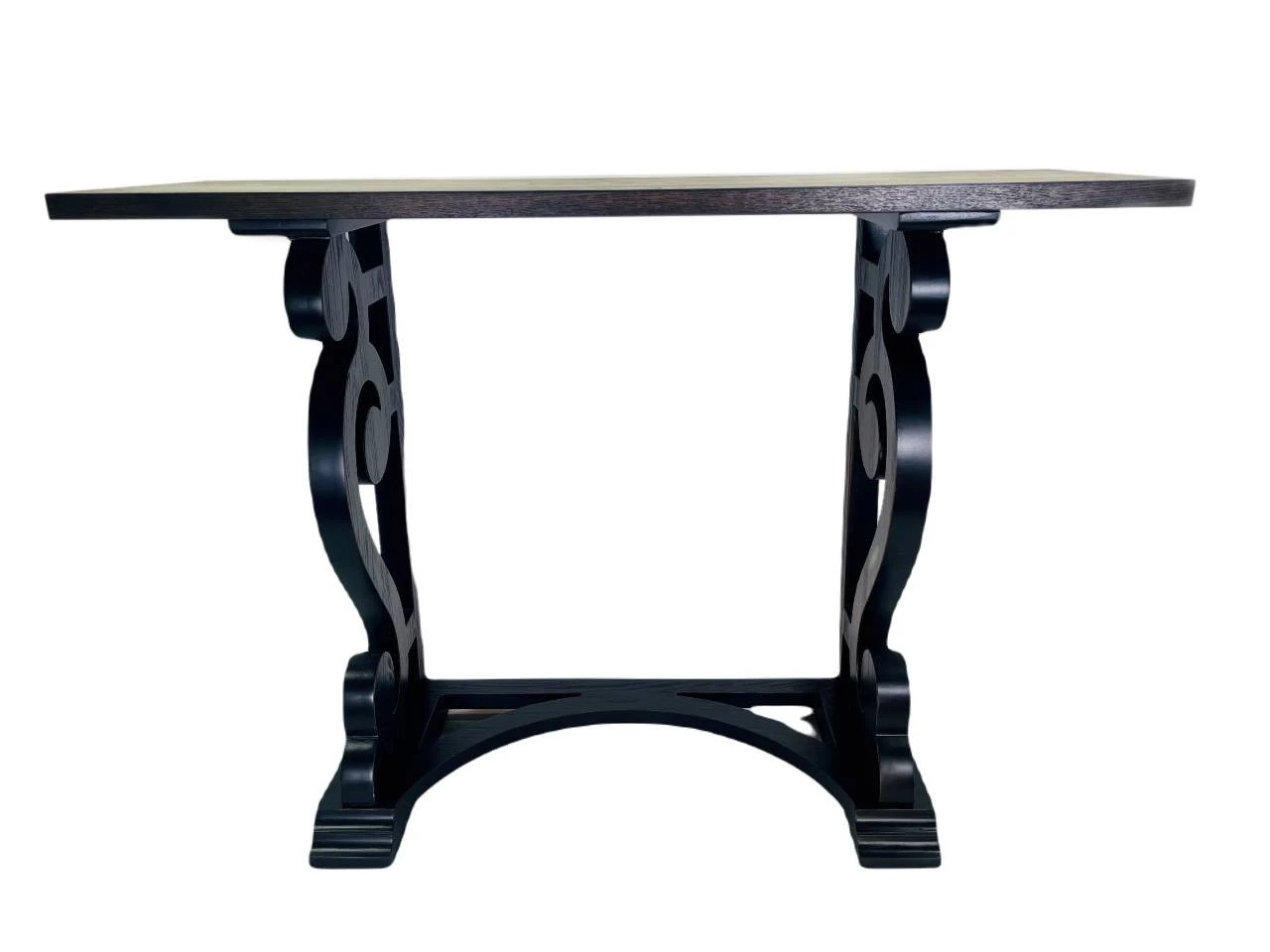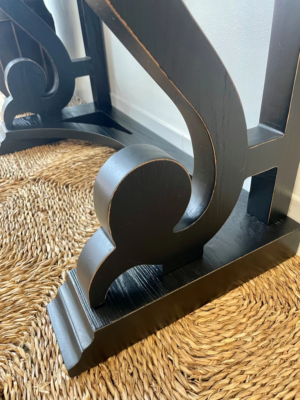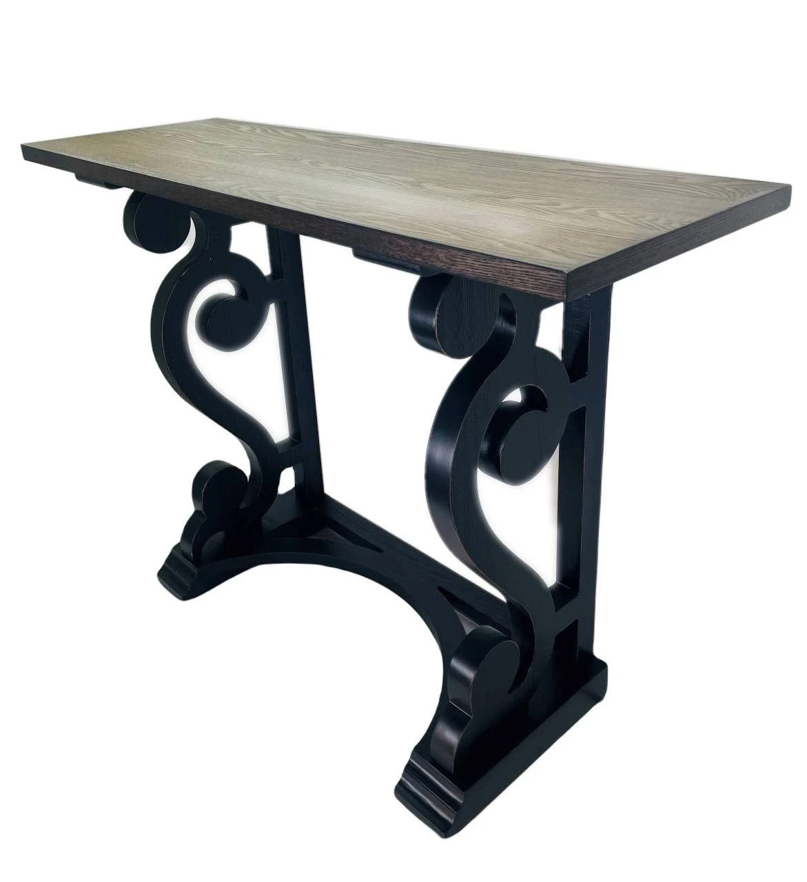 Beautiful scrolled pedestal details on curved base is beautiful to use for a small writing desk or a decorative console in any room.